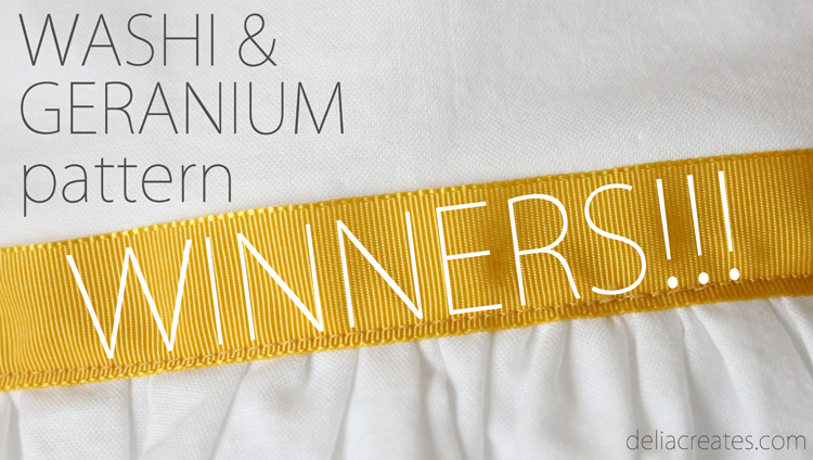 Washi Dress Pattern: Hannah who said, “I follow you via feedly. I would love to win the Trillium (washi) dress pattern. I’ve been eyeing that one for a while and just haven’t purchased it yet!” !!!