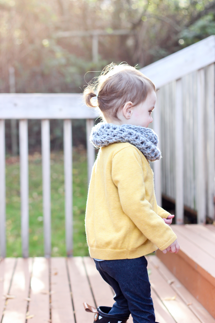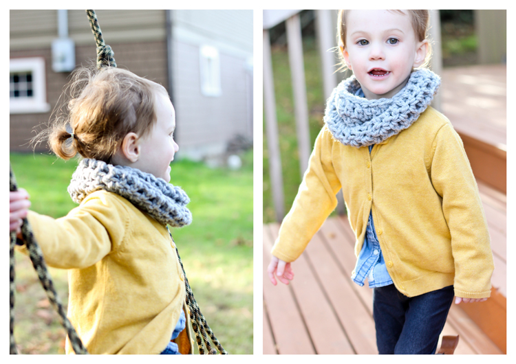 Today, I’m sharing another crocheted cowl scarf…except it’s toddler sized.