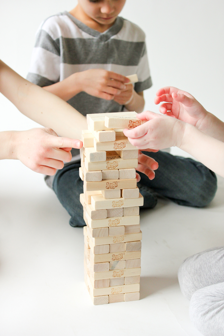 What a fun and genius idea! My kids love jenga. What id really like to know though.. Your backdrop? Willing to spill the beans? I always love your crisp white photos!