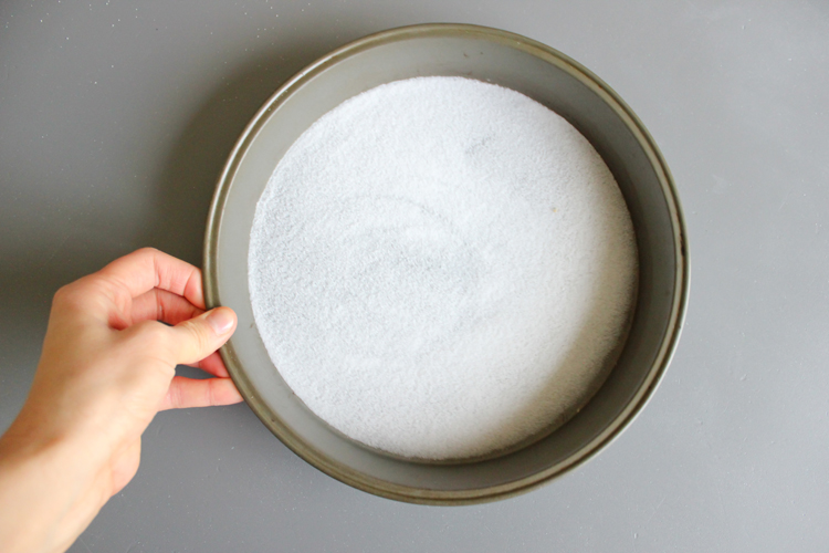 When you’re cleaning up HANG ON to that leftover salt! Slide it into a dark cake pan.