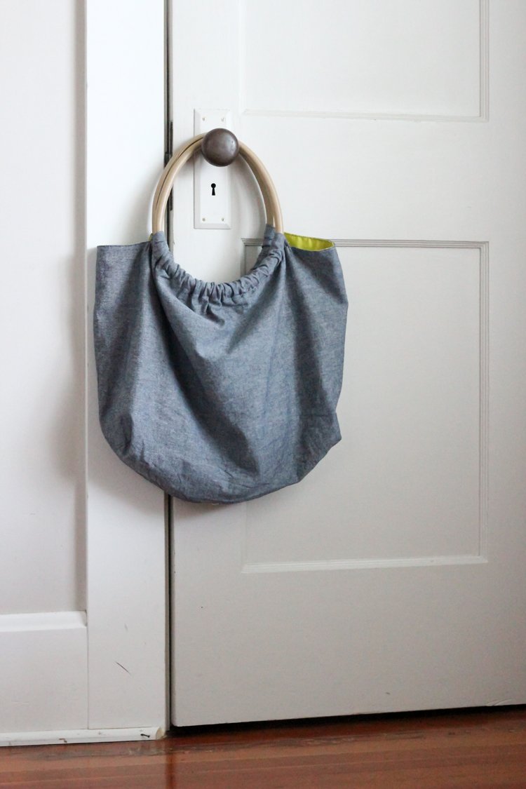 The handles are easier to sew than you might think. They also look really profesh, while being flexible and easy to wear/hold! They are much better than trying to fuss with the rigid wooden hoops from the store.