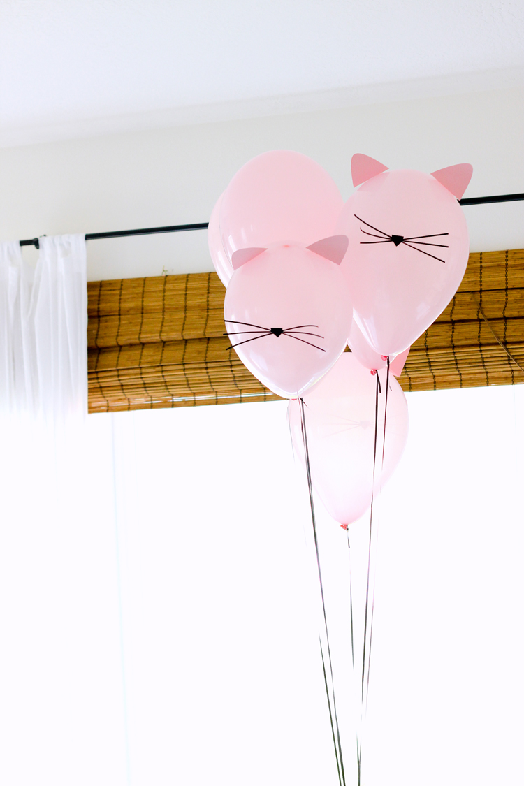 For the balloons, I simply cut some ears, and a nose/whiskers and taped them onto balloons in her favorite color…pink!