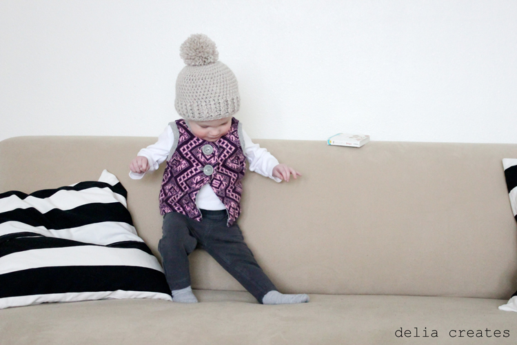 And that’s what you get with the Flip Vest pattern. I learned a couple new ribbed knit tricks and ended up with two vests, one for Natalie and one I plan on giving as a baby gift.
