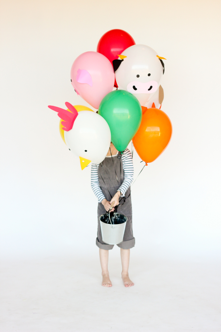 I also thought they would make a fun, quirky Halloween costume idea. Dress your child up in farmer like attire, which for us are her brother’s old overalls (which I actually DIY’d many years ago)聽and some rain boots, and tie the balloons to a bucket for collecting candy.