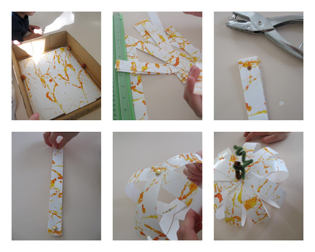I upped the kid quotient a bit by taking white paper and marble painting it first, before assembling the pumpkin.