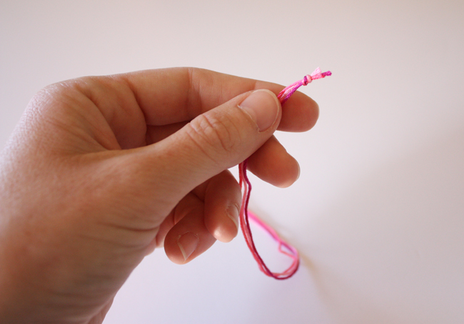 Today she’s sharing a pink friendship bracelet with us.