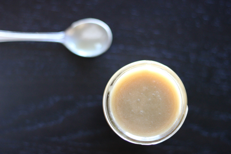 Vegan Caramel Sauce (8 of 28)Continually stir it for about a half hour with a wooden spoon, or until the liquid reduces to half. 聽Then give it a good whip with the whisk one more time. Remove it from the heat and pour it into a jar.