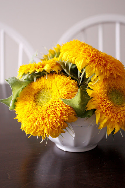 I happen to love sunflowers too. They signal the end of summer and the scent of Fall wafting around the corner, especially when you see them growing on the roadside. We get them all over town here at the end of August. I can almost see myself slipping on a cardigan for crisp mornings, hear the crunch of leaves on the sidewalk, and see all the bright beautiful pumpkins everywhere. September and October are by far my most cherished months of the year.